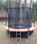 Этот батут я подарил своему сыну на день рождения. Прыгает он теперь на нем с большим удовольствием. Понравился материал прыжкового полотна- прыгучесть дает хорошую. Конструкция простая, поэтому со сборкой никаких проблем у меня не возникло. Покупал в магазине Зона спорта. Ассортимент здесь большой. Выбрал этот из-за подходящего размера. С доставкой все четко.
