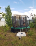 Слушайте, ну я и не педполагала, что батут на даче может так здорово развлекать детей. Купили в магазине Зона Спорта. Заказали вечером, на следующий день привезли. Выбрали Батут Eclipse Space Twin Green/Orange 10FT. По периметру батута сделана специальная сетка. Мат сделан из плотной ткани и не пропускает воздух, поэтому внутри матраса ребенок будет в тепле.
